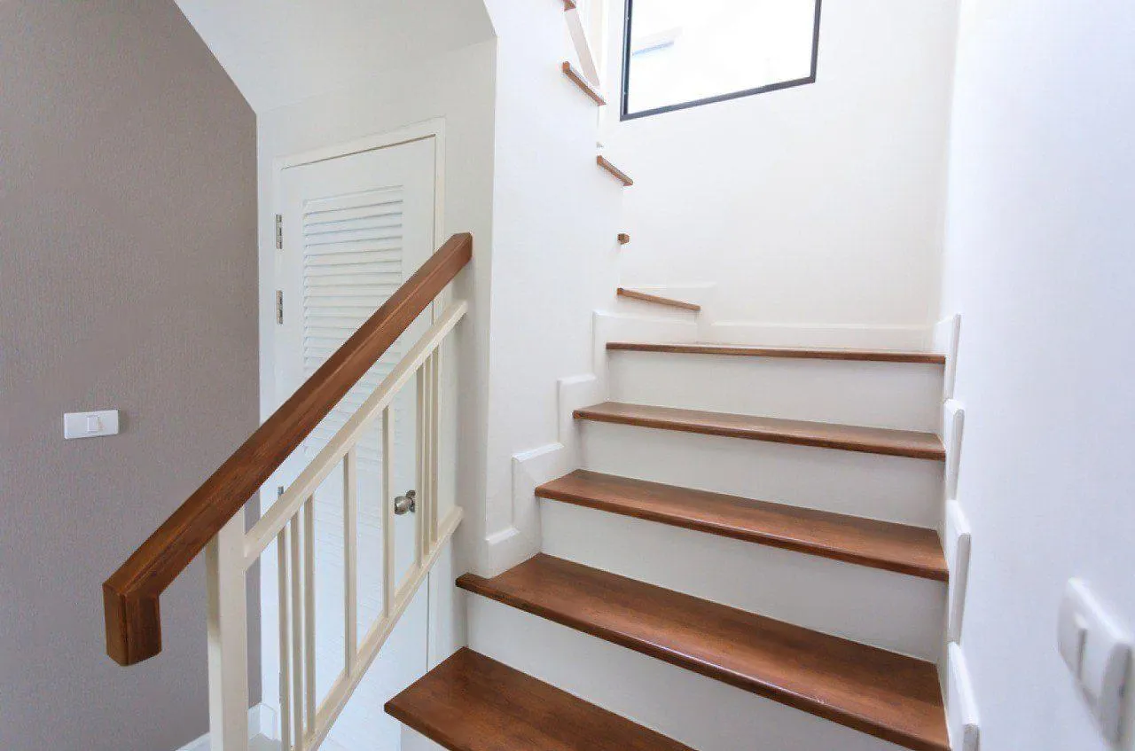 Идея для вашей лестницы: Рассмотрите возможность встроить в стену вдоль лестницы или непосредственно в подступенки точечную подсветку. Это не только добавит уюта и стиля в вечернее время, но и повысит безопасность передвижения в темноте.